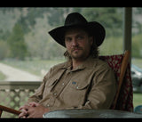 Wrangler Cowboy Cut Firm Finish Long Sleeve Western Snap Solid Work Shirt in Rawhide as seen on Kayce Dutton played by Luke Grimes on Yellowstone Season 5 on the Paramount Network.